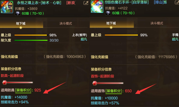 最重要的是,刷完这次的征讨副本之后,很多玩家也终于是可以把防具和首饰的积分等级提升到起源阶段了,这套装积分可以直接增加24000抗魔。这里有一点大家要注意了,这次升级征讨超凡首先升级首饰最好,要知道首饰的起源阶段是需要一件征讨超凡的,而防具的起源阶段却只需要4件征讨史诗加一件普通超凡就行了。