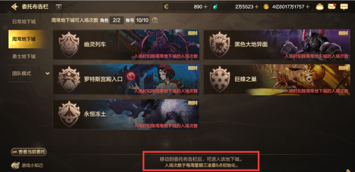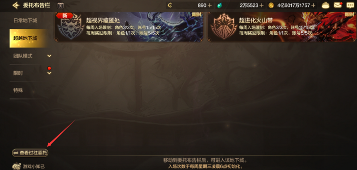 另外还有一个隐藏的“10号补偿”大家可能会忽视,这个奖励需要大家点开这个查看过完委托的选项,然后就会跳转到以前老版本的周常副本了。
